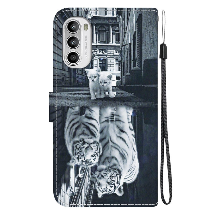 Funda de Cuero para Motorola Moto G52 con Dibujo Coloreado y Textura de Cristal (Reflejo de Tigre de Gato)
