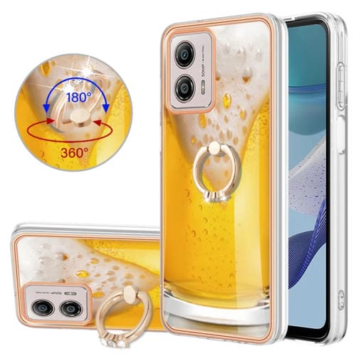 Caja para Motorola Moto G53 / G23 / G13 Imd Doble Cara Galvanizada con Soporte para Anillo (Cerveza de Barril)