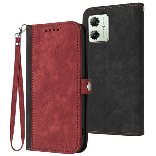 Funda de Cuero para Motorola Moto G54 Global con Hebilla Lateral y Correa de Mano (Rojo)