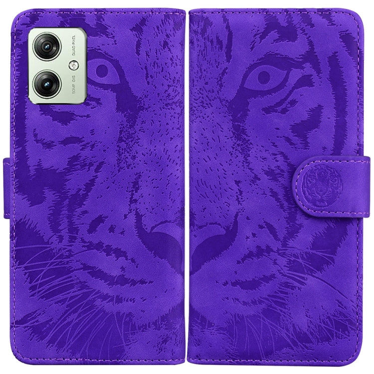 Funda de Cuero para Motorola Moto G54 Tiger Estampado en Relieve (Púrpura)