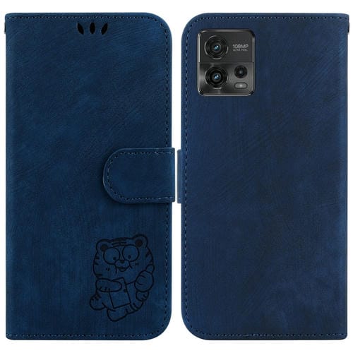 Funda para Motorola Moto G72 de Cuero con Relieve Little Tiger (Azul Oscuro)