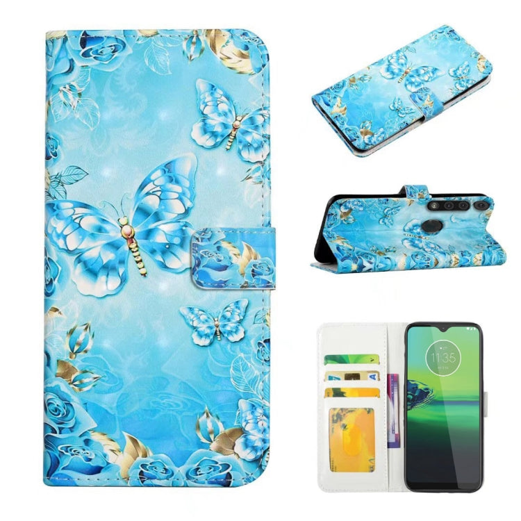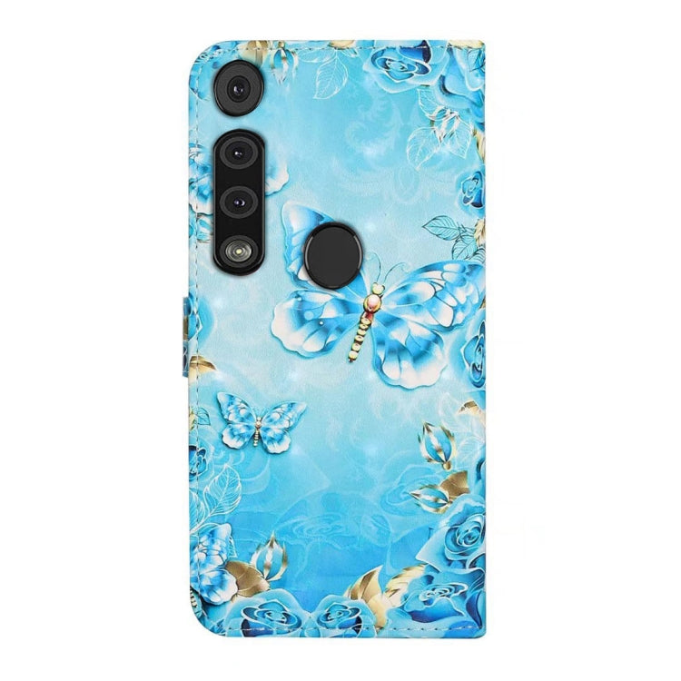 Funda de Cuero para Motorola Moto G8 Play con Dibujo 3D en Relieve al Óleo (Mariposas Azules)