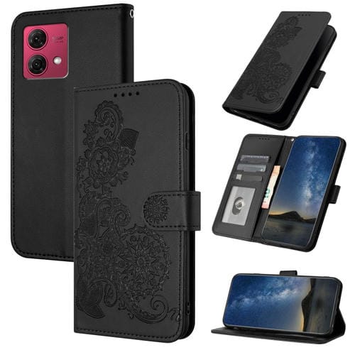 Funda de Cuero para Motorola Moto G84 5G Datura Flower con Tapa en Relieve (Negro)