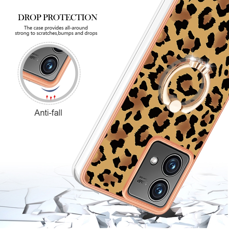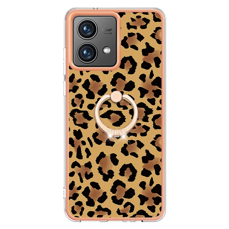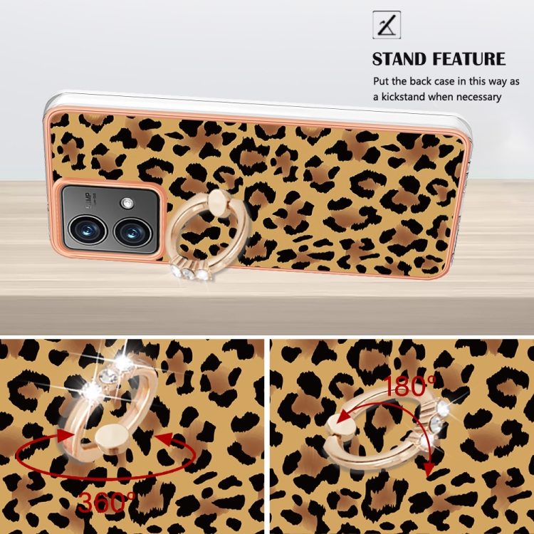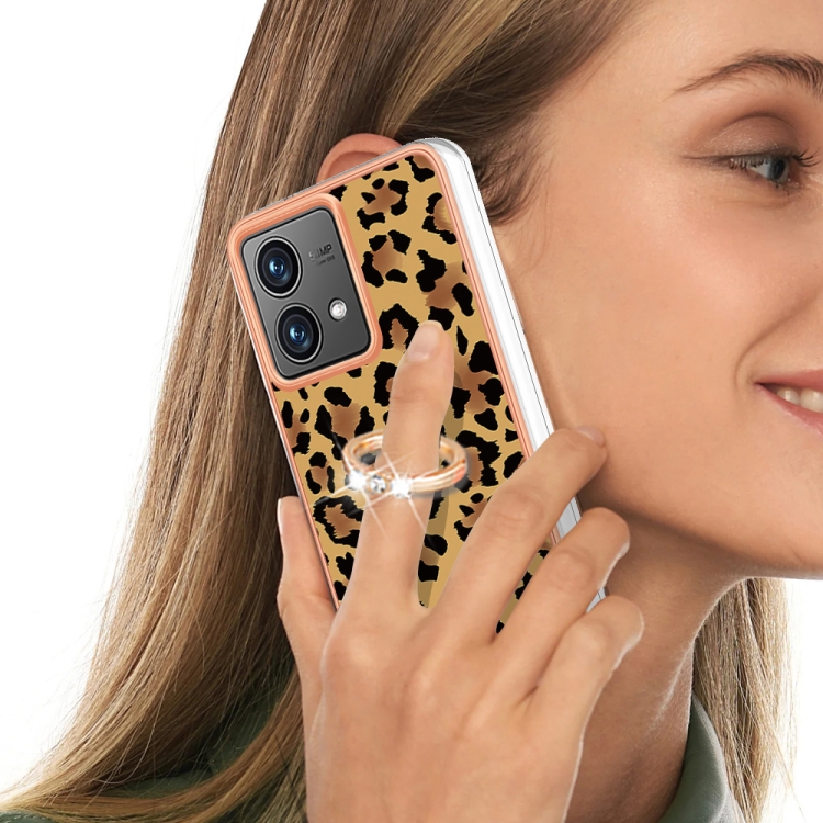 Estuche para Motorola Moto G84 Imd Doble Cara con Galvanoplastia y Soporte para Anillo (Leopardo)