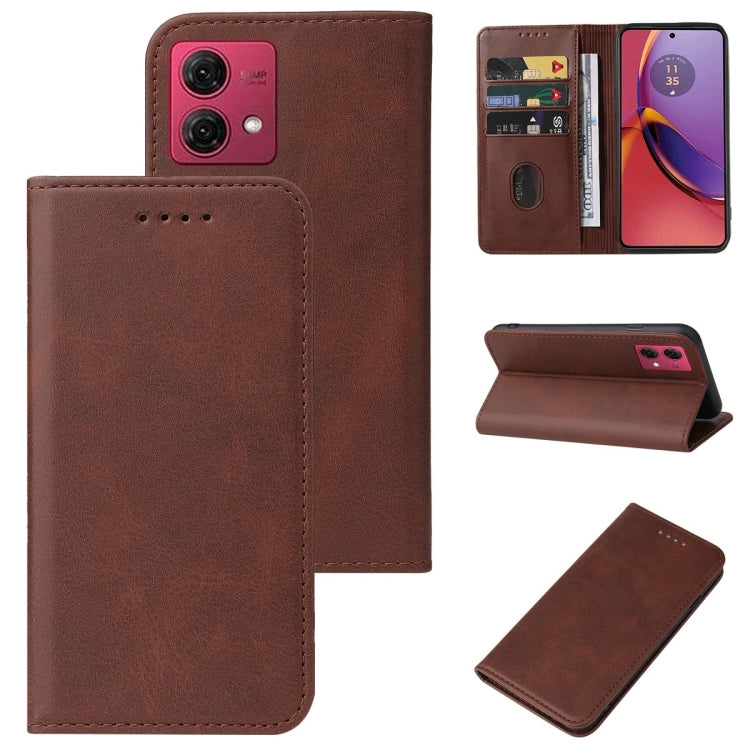 Funda de Cuero para Motorola Moto G84 con Cierre Magnético (Marrón)