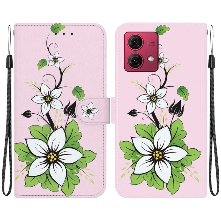 Funda de Cuero para Motorola Moto G84 con Dibujo Coloreado y Textura de Cristal (Lirio)