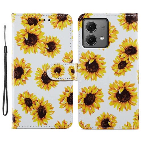 Funda de Cuero para Motorola Moto G84 con Tapa Horizontal y Patrón Pintado (Girasol)