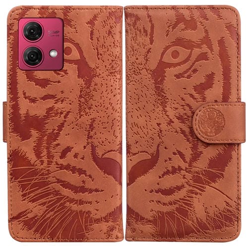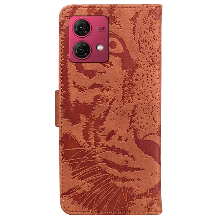 Funda de Cuero para Motorola Moto G84 Tiger Estampado en Relieve (Marrón)