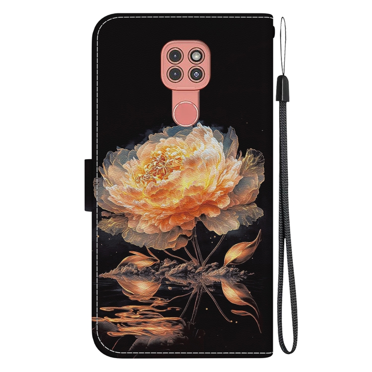 Funda para Motorola Moto G9 Play y E7 Plus de Cuero con Dibujo Coloreado y Textura de Cristal (Peonía Dorada)