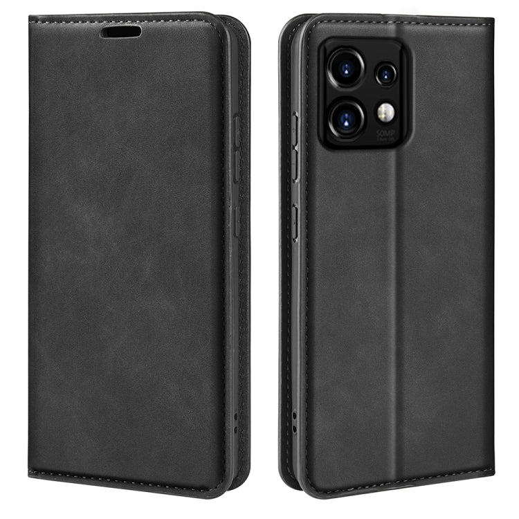 Estuche para Motorola Moto X40 Pro de Cuero con Succión Magnética y Piel Retro (Negro)