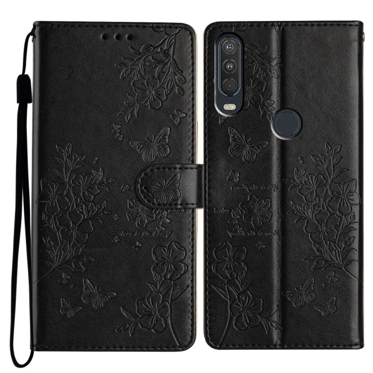 Funda de Cuero para Motorola One Action con Mariposas y Flores (Negro)