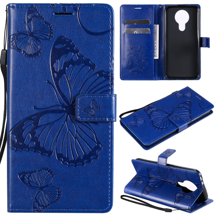 Para Nokia 3.4 3D Mariposas en relieve Patrón Horizontal Flip Funda de cuero con soporte, ranura para tarjeta y billetera (azul)