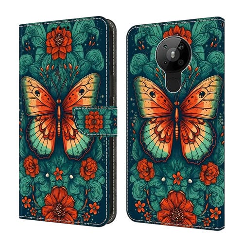 Funda de Cuero para Nokia 5.3 con Cristales Pintada Mariposa de Flores