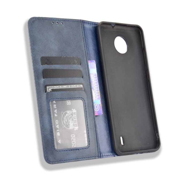 Para Nokia C10 / C20 Hebilla magnética Retro Crazy Horse Texture Horizontal Flip Funda de cuero con soporte y ranuras de tarjetas y marco de fotos (azul)