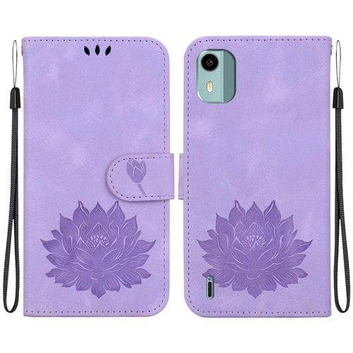 Funda de Cuero en Relieve para Nokia C12 Lotus para Teléfono (Púrpura)
