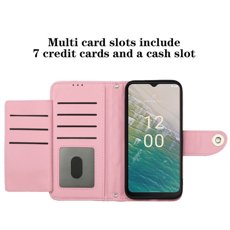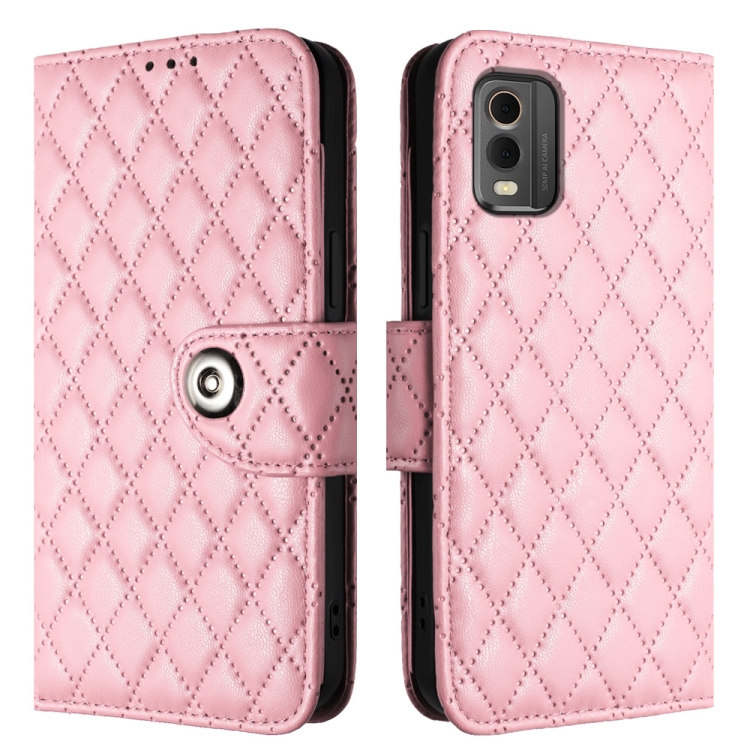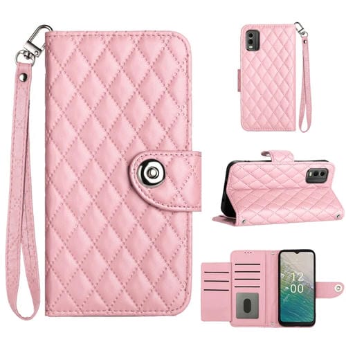 Funda para Teléfono Nokia C32 de Cuero con Tapa Textura Rómbica y Cordón (Rosa)