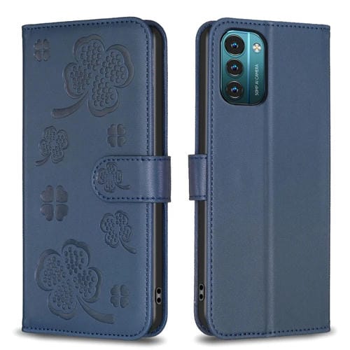 Funda para Nokia G11 y G21 de Cuero con Relieve de Cuatro Hojas (Azul)