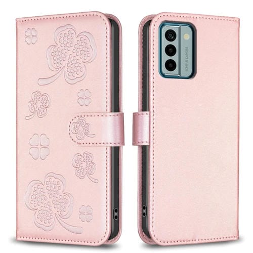 Funda de Cuero para Nokia G22 con Relieve de Cuatro Hojas (Rosa)
