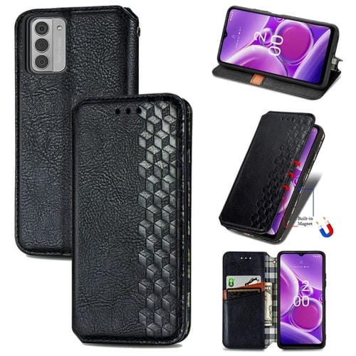 Funda de Cuero Magnético Prensado para Nokia G42 Cubic Grid (Negro)