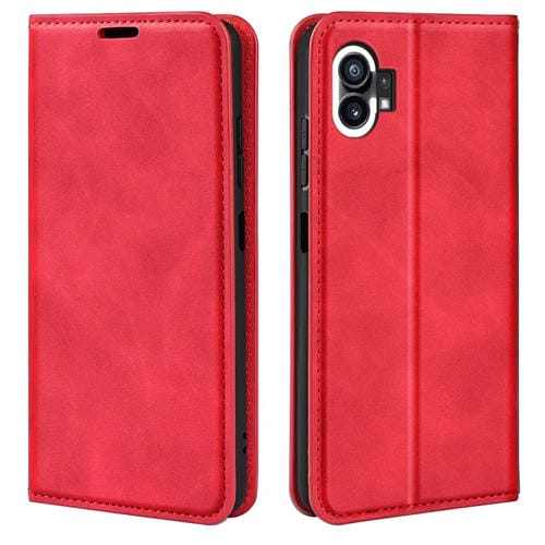 Estuche para Teléfono Nothine Phone 1 Cuero Piel Retro Succión Magnética (Rojo)
