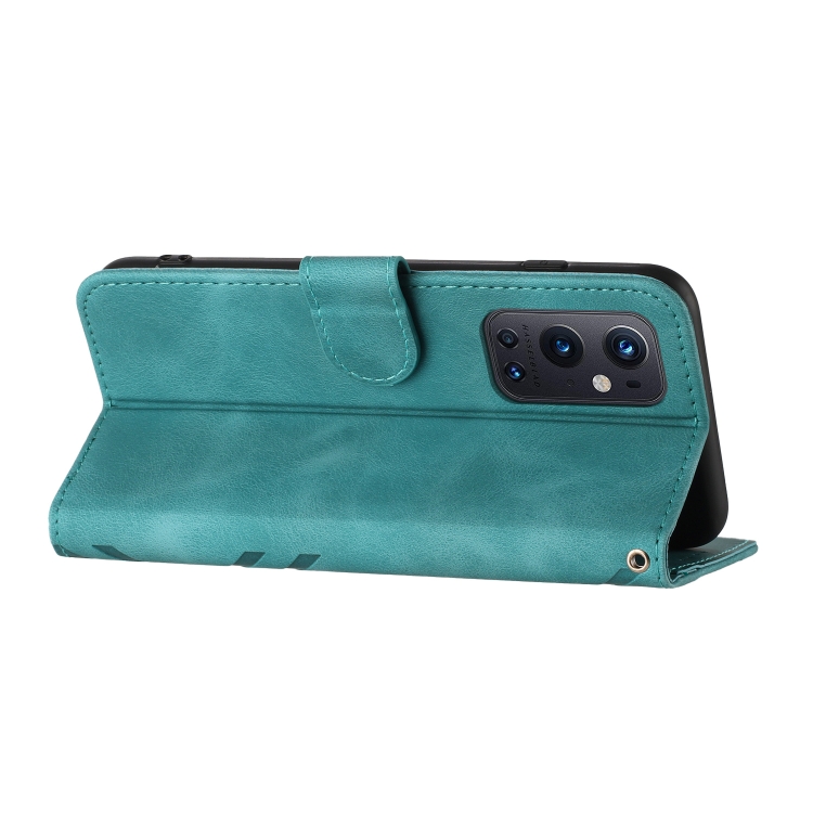 Funda de Cuero para OnePlus 9 Pro con Patrón Line Skin Feel (Azul Claro)