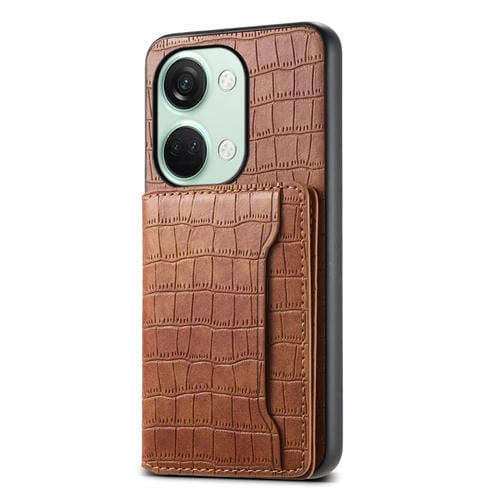 Estuche para OnePlus Ace 2V Denior con Diseño de Bolsa para Tarjetas y Textura de Cocodrilo (Marrón)