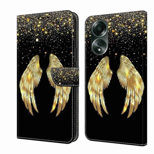 Para Oppo A58 4G Crystal 3D Funda Protectora de Cuero para Teléfono a Prueba de Golpes (Alas Doradas)