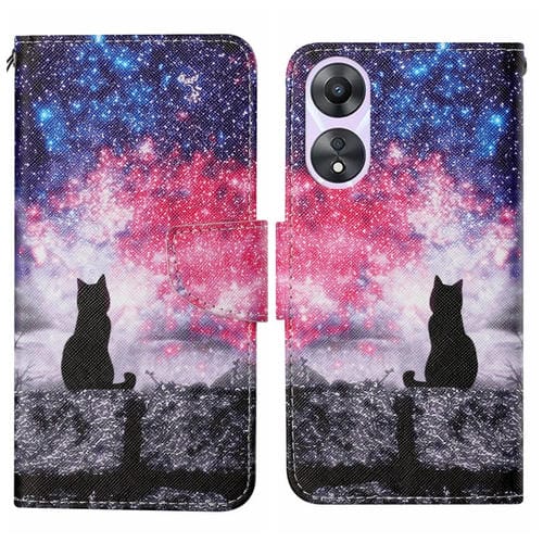Para Oppo A58 4G Funda de Cuero para Teléfono con Patrón de Dibujo Coloreado (Star Sky Cat)