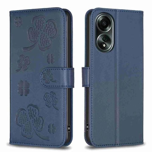 Para Oppo A58 4G Funda de Teléfono de Cuero En Relieve de Cuatro Hojas (Azul)