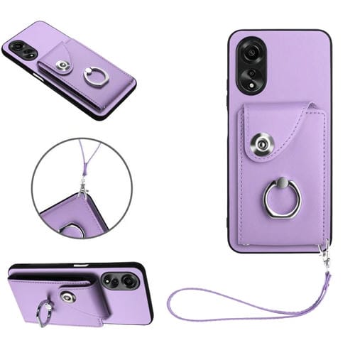 Para Oppo A58 4G Global Organ Card Bag Ring Holder Pu Funda para Teléfono con Cordón (Púrpura)