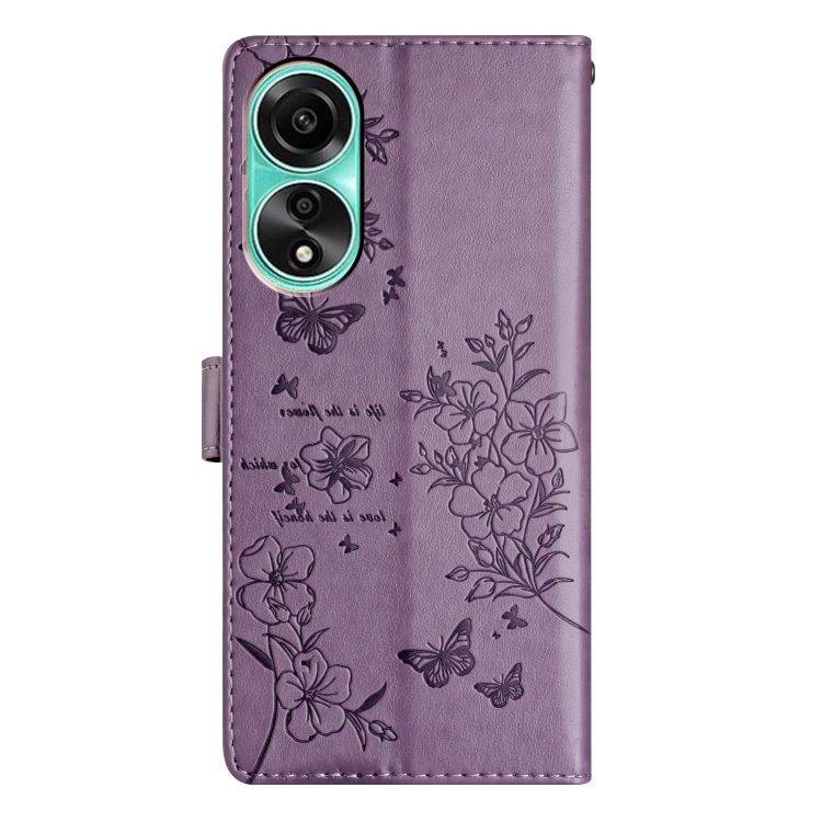 Para Oppo A78 4G Butterfly Love Flower Funda de Cuero para Teléfono En Relieve (Púrpura)