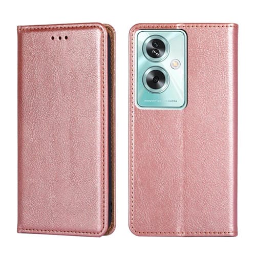Para Oppo A79 5G Funda de Teléfono de Cuero Magnético de Color Sólido con Aceite Brillante Global (Oro Rosa)