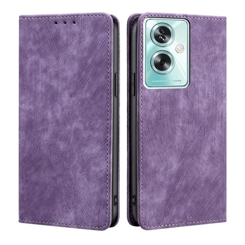 Para Oppo A79 5G Rfid Funda de Teléfono de Cuero Magnético con Cepillo Antirrobo (Púrpura)