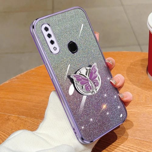 Para Oppo A8 Funda para Teléfono de TPU con Soporte de Mariposa con Brillo Degradado Plateado (Púrpura)