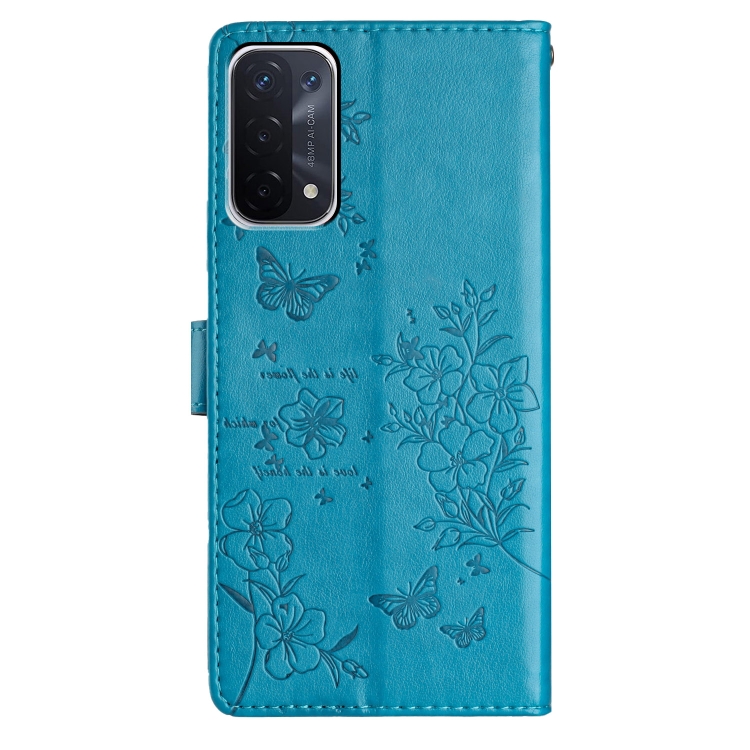 Para Oppo A93 5G Funda para Teléfono de Cuero con Relieve de Flor de Amor y Mariposa (Azul)