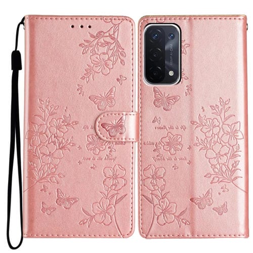 Para Oppo A93 5G Funda para Teléfono de Cuero con Relieve de Flor de Amor y Mariposa (Oro Rosa)