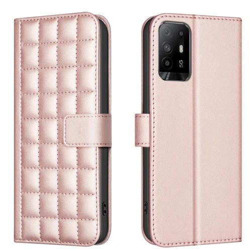 Para Oppo A94 5G / Reno5 Z / F19 Pro+ Funda de Cuero para Teléfono con Textura Cuadrada (Oro Rosa)