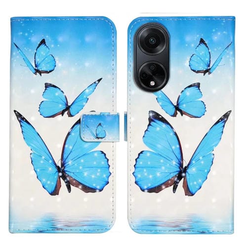 Para Oppo A98 5G Funda de Teléfono de Cuero con Dibujo 3D En Relieve al Óleo (3 Mariposas)