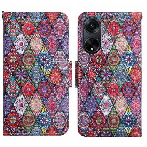 Para Oppo A98 Funda de Cuero para Teléfono con Patrón de Dibujo Coloreado (Caleidoscopio de Diamantes)