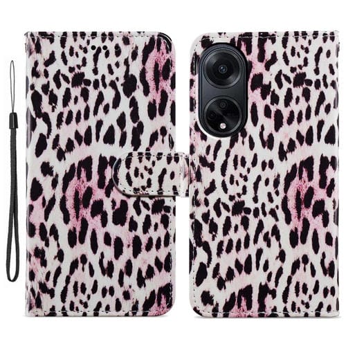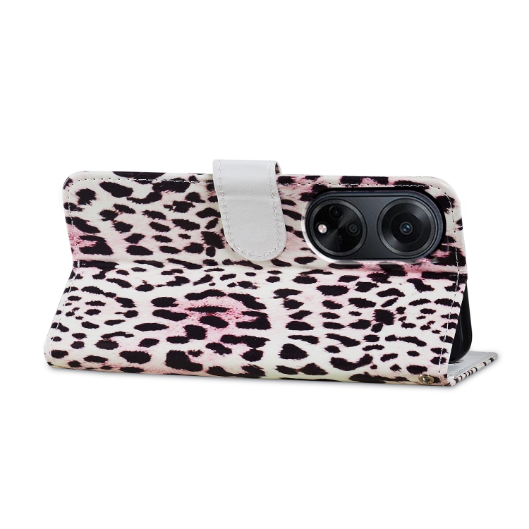 Para Oppo A98 Funda de Teléfono de Cuero con Tapa Horizontal con Patrón Pintado (Leopardo)