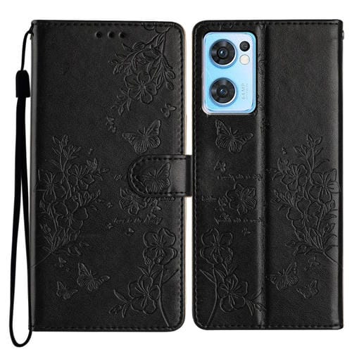 Para Oppo Find X5 Lite Butterfly Love Flower Funda de Cuero para Teléfono En Relieve (Negro)