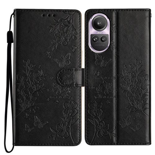 Para Oppo Reno10 / Reno10 Pro Butterfly Love Flower Funda de Cuero para Teléfono En Relieve (Negro)