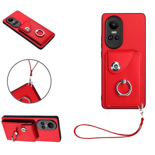 Para Oppo Reno10 / Reno10 Pro Global Organ Card Bag Ring Holder Pu Funda para Teléfono con Cordón (Rojo)