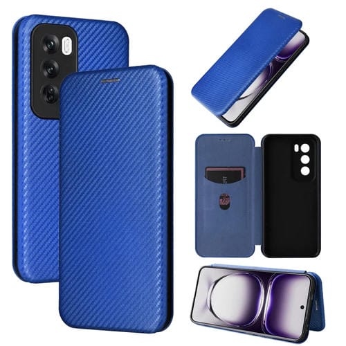 Para Oppo Reno12 5G Funda de Teléfono de Cuero con Tapa con Textura de Fibra de Carbono Global (Azul)