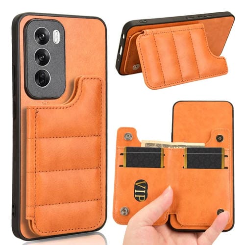 Para Oppo Reno12 5G Funda para Teléfono con Bolsa para Tarjetas de Costura con Patrón de Vaca Global (Naranja)