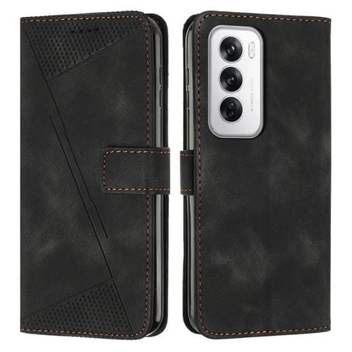 Para Oppo Reno12 5G Global Dream Triangle Funda de Cuero para Teléfono con Cordón (Negro)