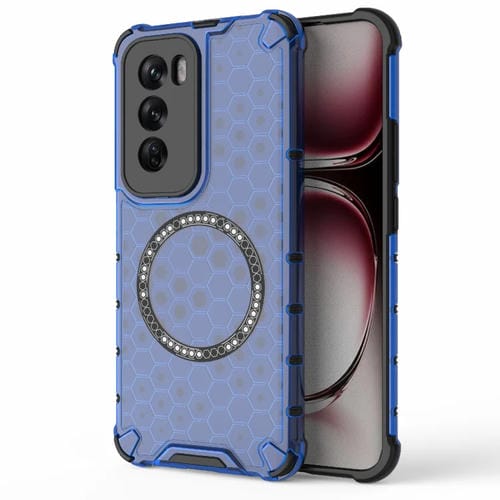 Para Oppo Reno12 Global Honeycomb Magnetic Ring Funda para Teléfono a Prueba de Golpes (Azul)