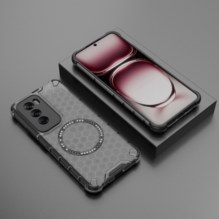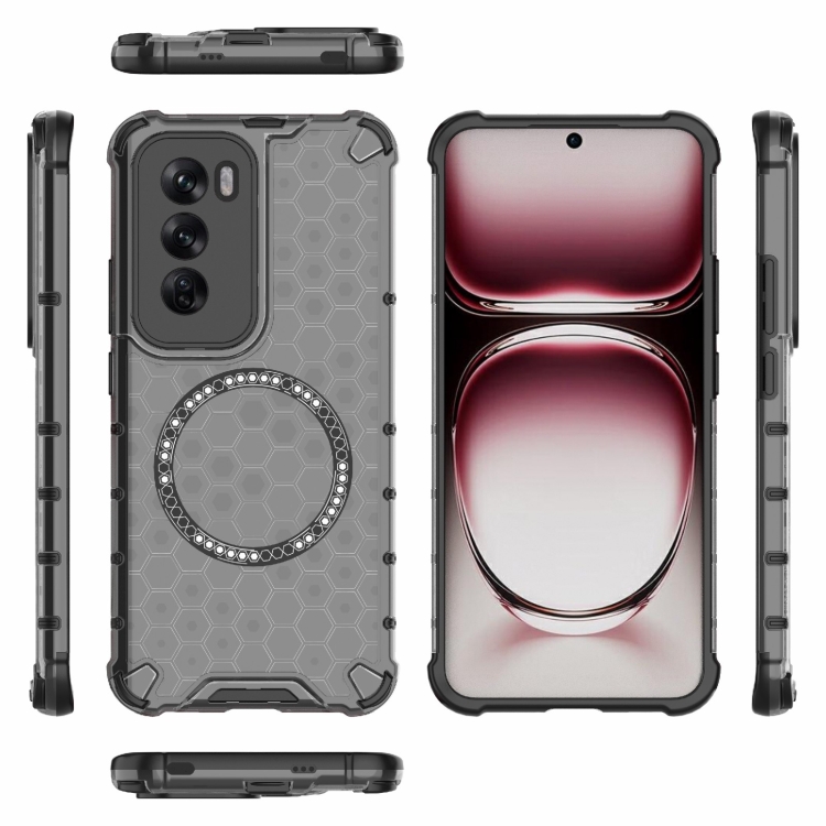 Para Oppo Reno12 Global Honeycomb Magnetic Ring Funda para Teléfono a Prueba de Golpes (Negro)