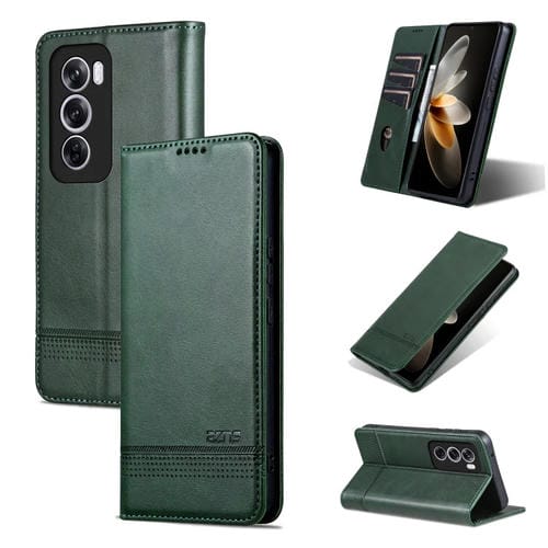Para Oppo Reno12 Pro Global Azns Funda para Teléfono de Cuero con Tapa con Textura de Pantorrilla Magnética (Verde Oscuro)