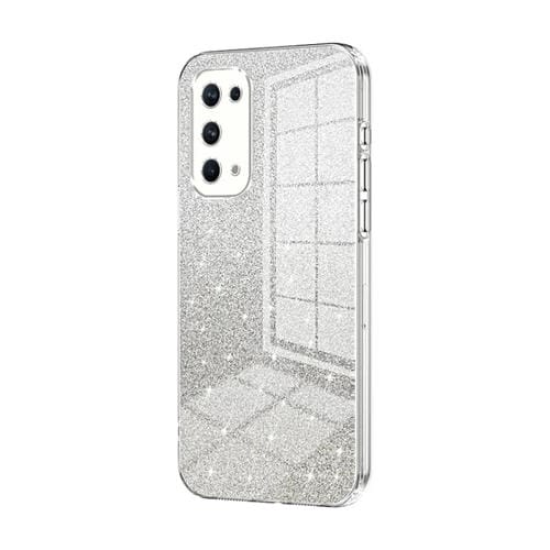 Para Oppo Reno5 Pro Estuche para Teléfono Galvanizado con Polvo de Brillo Degradado (Transparente)